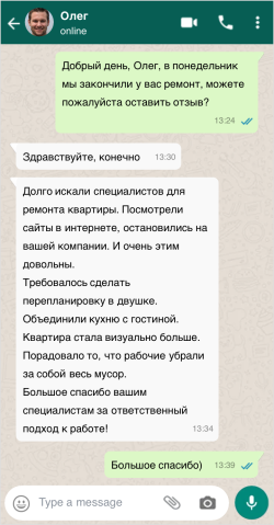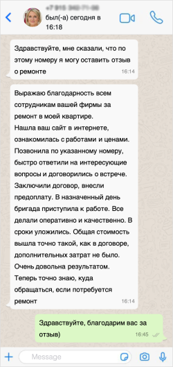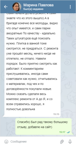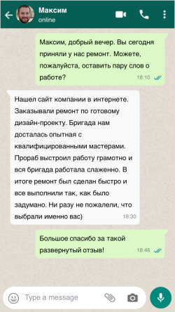 Фирма занимается ремонтом офисов, коттеджей, квартир, дач. Выполним различные виды ремонтных работ в помещении. Многие клиенты, которые обращались в нашу компанию, оставили положительные отзывы, они размещены на сайте. У нас представлены фото интерьеров для ознакомления заказчиков. Мастера сделали больше 1000 заказов качественно и в срок.