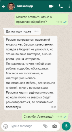 После заключения договора приступаем к ремонту. Продолжительность капитального ремонта составляет 20 дней, а косметического пять. Срок работы зависит от площади помещения и его особенностей.